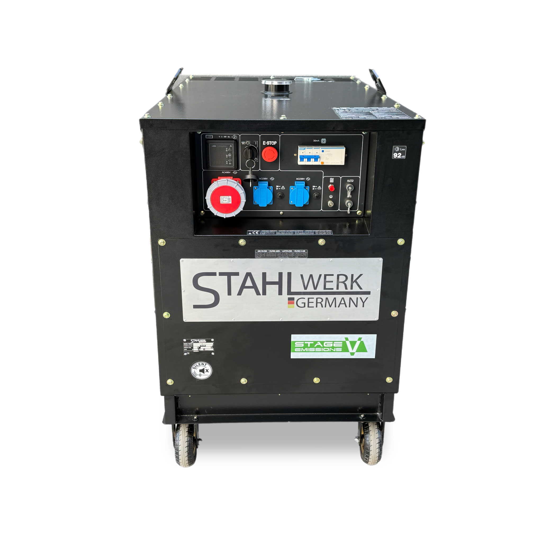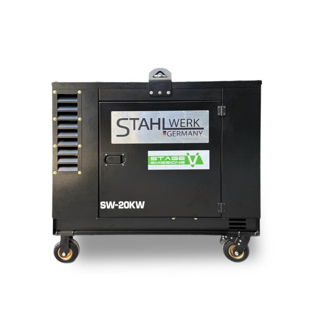 De STAHLWERK SW-20KW is een krachtige 20 kVA dieselgenerator, ideaal voor professioneel gebruik in de industrie, handel en als noodstroomvoorziening. Met zijn 2-cilinder dieselmotor, een brandstoftank van 46 liter en geluidsdempende behuizing biedt hij hoge betrouwbaarheid en lange gebruiksduur.